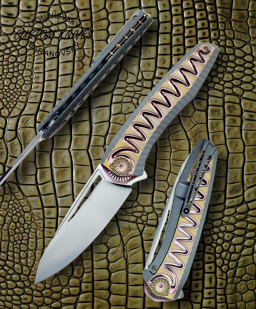The "Gator" folding knife is a high-quality knife crafted in the finest traditions of knifemaking. The blade is made of RWL 34 steel with a hardness of 62 HRC. The handle is made of titanium. The folding mechanism features a ceramic bearing of our own making. The ceramic ball rotates in a liner. Gift packaging is included.