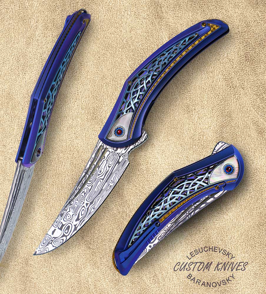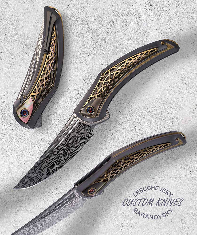 Folding knife Olvar creations based on the character's motives named after Olvar from the book Volodar Persniv. Olvar is a mythical origin that connects his master’s people with the mythical world. The double garnets on the handle symbolize the union and connection of the two worlds. The garnet is like the eye of Olvar, which will always flow in both worlds.